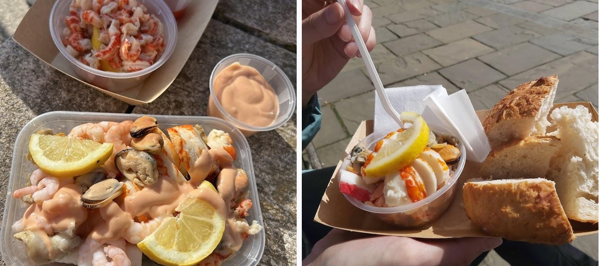 Hartgills Seafood specializes in traditional fresh seafood. Their menu includes a variety of options like whelks, mussels, prawns, cockles, and jellied eels.